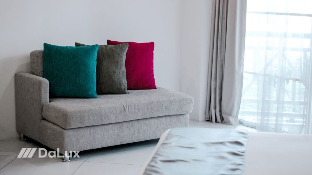 Jastuci od tkanine zavesa za kompaktnost enterijera: Stvaranje skladnog i povezanog prostora Kombinacija jastuka i zavesa od istog materijala predstavlja